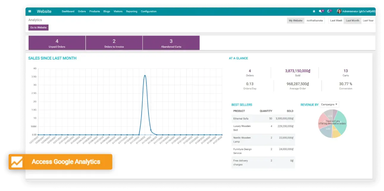 Trực quan hóa dữ liệu về lưu lượng truy cập website (lượt xem, lượt khách ghé thăm…), tích hợp cùng dữ liệu